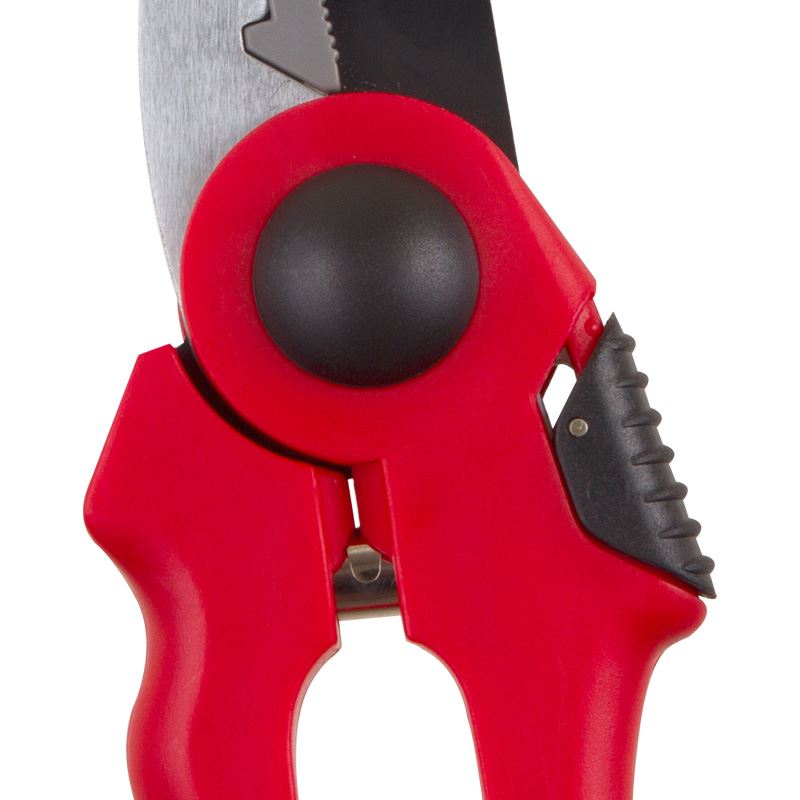彎曲的鋸齒狀平口設計可將樹莖纏繞,避免剪切滑落並可平穩固定於剪切位置。